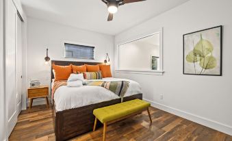 (2) Second bedroom - Queen size bed, Samsung TV with Roku streaming, and a nearby bathroom.