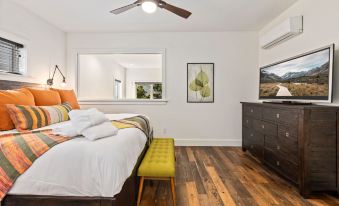 (1) Primary bedroom - King size bed, Vizio TV with Roku streaming, and an en suite bathroom.