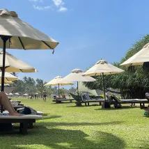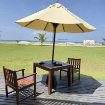 Wir würden nicht wieder kommen. Auf den ersten Blick eine schöne Anlage, auf den zweiten Blick bemerkt man die vielen Mängel. Im Zimmer blättert der Putz von der Wand, der sich dann natürlich im Zimmer verteilt, das Zimmer wird nicht standardgemäß jeden Tag gereinigt. der Wunsch muss explizit geäußert werden. Unser Bettzeug war bei Ankunft schmutzig, wurde dann gereinigt. Die Auflegematten für die Liegen waren ebenfalls zum Großteil sehr schmutzig und abgelehnt wie auch die Handtücher, ggf. verstärkt durch das feucht-warme Wetter. Das Abendessen war durchschnittlich lauwarm, reichte aber von eiskalt bis warm. Schön war die Station, an der man sich etwas frisch zubereiten lassen konnte (zum Beispiel Naan-Brot). Auf das Mittagessen im Café (Pommes!) mussten wir weit über 1 Stunde warten, obwohl 4 Angestellte dort Positiv hervorzuheben ist, dass die meisten Angestellten sehr freundlich waren. Wir waren jedoch in weitaus besseren Hotels während unserer Sri Lanka Reise.