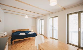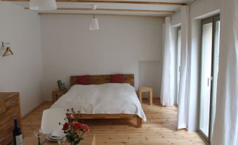 Four independent, stylish apartments, large common room for cooking, dining and meetings, 4 bedrooms + 2 connecting rooms. 4 double beds, 2 single beds, 2 sofa beds, 4 mattresses; Max. 16 pers. For families, groups, business trips, workshops, dinner parties.