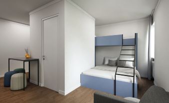 1 Doppelbett und 1 Etagenbett und 1 Bettsofa