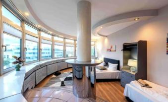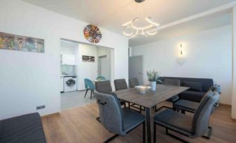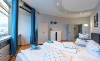 Located on the 6th floor of a modern building with elevator access, the apartment boasts breathtaking panoramic views of Berlin’s skyline, creating a truly memorable setting for your stay. Inside, you’ll find four spacious and separately accessible bedrooms, making it ideal for families, groups of friends, or business travelers who value privacy and comfort.