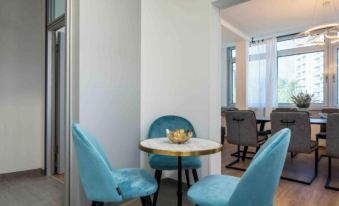 The bright and airy living room is perfect for relaxing or socializing, complete with comfortable sofas and a large dining table for shared meals or casual gatherings. The fully equipped kitchen includes all the essentials for preparing meals at home, including cookware, a stove, oven, refrigerator, and more. The apartment also features two full bathrooms, each equipped with a walk-in shower and toilet, providing added convenience for larger groups. Thoughtful amenities like free Wi-Fi throughout the apartment, a washing machine, and private check-in/check-out services ensure a seamless and stress-free experience. Paid parking is available for guests traveling by car, and the building offers family-friendly features, making it a great choice for guests of all ages. Located less than a kilometer from the Zoologischer.