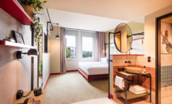 Ich war hier gemeinsam mit meinen Eltern (1 Doppelzimmer für 2 Nächte, ich bin nur für eine Nacht geblieben) - das sorgte anscheinend für Verwirrung. Beim Check-In musste ich erklären, dass mir falsche Beträge angezeigt worden sind (sollte nur das Doppelzimmer bezahlen), auch beim Check-Out hatte man meine Zimmernummer auf der Rechnung, aber das Doppelzimmer abgerechnet, sodass ich wieder erklären musste, dass ich beides zahle. Das Personal war jedoch sehr freundlich. Schade nur, dass es keine weiteren Informationen gab außer den Weg zum Zimmer, uns wurde auch nicht mitgeteilt, um wie viel Uhr wir auschecken mussten. Eine Rechnung habe ich auch nicht bekommen (die war aufgrund der falschen Beträge ja auch nicht korrekt, aber ich dachte, dass man die korrigierte Rechnung dann unaufgefordert per Mail schickt). Die Zimmer sind neu und ansprechend eingerichtet, das Bett fand ich sehr bequem und das Zimmer auch sehr sauber. Was ich super fand, war die kostenfreie Minibar. Für ausländische Gäste gut ist, dass es nicht nur deutsche Steckdosen gibt, sondern verschiede Adapter im Zimmer und die Möglichkeit, über USB zu laden. Mein Zimmer war zum Hinterhof und sehr leise, das Zimmer meiner Eltern jedoch zur Hauptstraße, wo die Musik des Clubs gegenüber bis 3 Uhr morgens zu hören war. Würde also empfehlen, nach einem Zimmer zum Hof zu fragen. Was ich in meinem Zimmer nicht so toll fand, war, dass die Dusche direkt neben der Eingangstür war - es wirkte sehr beengt. Das Zimmer war auch sehr klein, für eine Nacht und eine Person aber ausreichend. Es gab leider keine Möglichkeit, seine Kleidung auszupacken. Kein Regal/Schrank/Ablage vorhanden, nur zwei Haken für Jacken und ein einziger Kleiderbügel. Im "Bad" leider kein Kosmetikspiegel. Für einen längeren Aufenthalt nicht empfehlenswert. Leider war es im Zimmer sehr kalt und es gab kaum eine Möglichkeit, etwas zu verändern. Aus Umweltgründen ist das sicher super, aber im Winter frieren, ist auch nicht toll (man konnte den Regler nur -1,5 bis +1,5 Grad zur voreingestellten Temperatur ändern). Find ich vor allem nicht gut, weil das Bad eben im Zimmer integriert ist und wenn ich aus der Dusche komme, sollte es vielleicht schon etwas wärmer sein als wenn ich schlafen gehe. Das Frühstück haben wir nicht genutzt, da es mit 25€ pro Person viel zu teuer ist. Maßlos überteuert ist auch die Bar. Ich hatte einen alkoholfreien Cocktail, also quasi eine Saftmischung. Dieser wurde in einer Champagnerschale serviert - waren also vielleicht 4 Schlucke und dafür 7,50€. In dem Lillet meiner Mama war ca. das dreifache drin, das fand ich wirklich sehr frech für etwas Saft und würde dort keinesfalls wieder einen Abend verbringen.