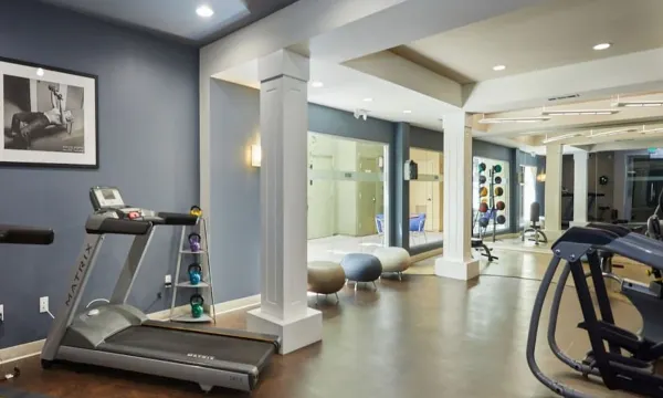 Shared access to the building's amenities, including the heated pool, hot tub, gym, business center, and community room. Paid washer and dryer on your floor.