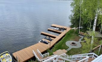 One of the most scenic lots on Big Lake! From a stable expansive dock, to an amazingly perched master bedroom, this property had it all. The view is exceptional! The beds were fantastic, a 10/10 sleep! It was an elegant Big Lake property, with ample space to entertain family & friends.
