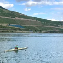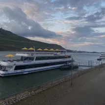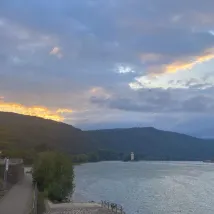 Das Hotel hat eine sehr gute Lage mit Blick auf den Rhein. Die Einrichtungen sind zwar nicht sehr neu, aber sehr sauber und hygienisch. Der Bahnhof und der Fährhafen sind bequem zu Fuß erreichbar zum Einkaufszentrum Bingen und Rüsheim. Bei hohen Temperaturen kühlt ein Ventilator den Raum ab, sodass es nachts nicht heiß wird; das Foto wurde in der Nähe des Hotels aufgenommen.