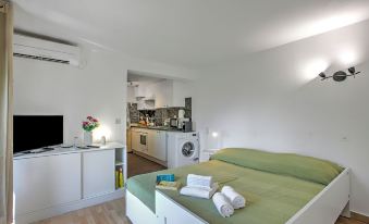 Mach es dir in diesem Apartment mit Klimaanlage gemütlich. In der Küche, die über einen Kühlschrank und einen Ofen verfügt, wirst du dich wie zu Hause fühlen. Ein 21-Zoll-Flachbildfernseher mit Satellitenempfang sorgt für deine Unterhaltung, während du von dem WLAN-Internetzugang (gegen Gebühr) profitieren kannst, um mit Freunden und Familie in Kontakt zu bleiben. Vor Ort findest du jeglichen Komfort, darunter eine Mikrowelle und einen Wasserkocher mit Kaffee-/Teezubehör.