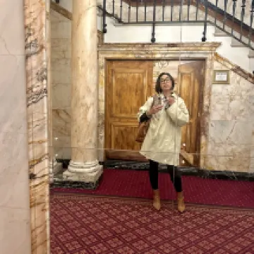 The check in lobby is nothing much impressive but the overall building and decor with high ceilings, big staircases and marble surfaces are albeit a bit outdated in tone, still much preferable to us.