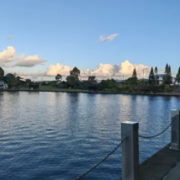 Wunderschöne Lage. Kanawa Bay ist idyllisch. Es ist modern und gut geplant. Das Hotel ist von Wasser und schönen Mauern umgeben. Das Hotel verfügt über kostenlose Parkplätze und ein gemütliches Café, das gleichzeitig als Frühstücks- und Speiseraum dient – die Anzahl der Sitzplätze ist begrenzt. Das Personal ist sehr freundlich und hilfsbereit. Die Zimmer sind komfortabel und ruhig. Auf jeder Etage gibt es sogar einen Wasserspender mit Filter, der sauberes, kühles Wasser spendet. Lediglich die Nachtbeleuchtung fehlt. Das Frühstück ist gut zubereitet und sehr lecker. In der Umgebung des Hotels gibt es zahlreiche Restaurants, die einen Besuch wert sind. Coles und Aldi sind im Einkaufszentrum Stockland Birtinya fußläufig erreichbar.