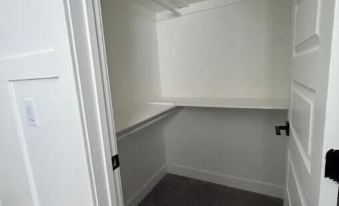 A tranquil bedroom with a king-size bed and a generous walk-in closet.
