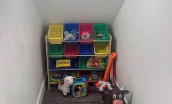 A recreational haven in the downstairs, featuring air hockey, foosball, and toys for the children.