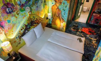 Vindue ud mod en brostensbelagt vej - den går ikke. Så skal vinduerne været støjreducerende. Mega varmt i værelset, nymoderniseret, hvor ikke lavet med aircondition. Vi sov ikke mange timer den nat i et ellers spændende hotel med meget flot og inspirerende kunst. Har ikke lyst til at komme igen.