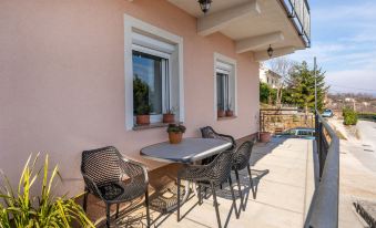 Bregi 5 km von Opatija: Zweifamilienhaus "Željko". Oberhalb von Opatija, sonnige, erhöhte Lage, 5.5 km vom Meer. Zur Alleinbenutzung: Terrasse (16 m2), Gartenmöbel. Im Hause: Internetzugang. Parkplatz beim Haus auf dem Grundstück. Einkaufsgeschäft 450 m, Restaurant 550 m, Bushaltestelle 450 m, Kieselstrand 5.5 km, betonierter Strand 5.5 km.