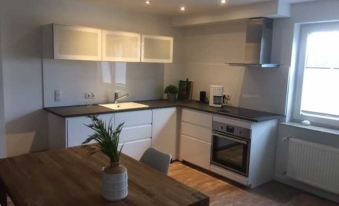 The 50 m² apartment with private entrance and a lovely terrace has two rooms. The modern kitchen, as well as the bedroom with access to the wet area, with walk-in shower, invite you to feel good.