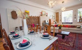 The driveway for the Banking Hall is shared with Holmbank House, formerly the bank manager’s residence, a separate family home. There is a small patio area for exclusive use of Banking Hall guests, and off street parking for two cars, with access to an EV charger (by arrangement).