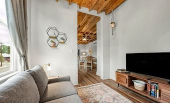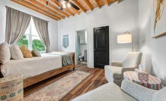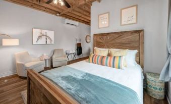 This spacious studio style second floor apartment is great for a couple with children. The couch opens to a full-size bed. Easy walking distance to downtown and the historic Kyle House, home of Polite Coffee company with its coffee uniquely roasted in Bryan. Together with The Hideaway and The Magnolia Bloom apartments a family could have the entire second floor landing to themselves. A fully equipped kitchen and an in-apartment washer and dryer make this more than a sleepover.