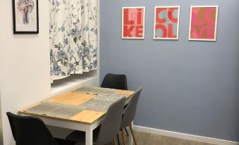 Towards the building's interior courtyard, you find the third large suite which has it's own fully equipped brand new kitchen and bathroom with a shower/tub. Due to the comfort of three separate suites, two kitchens and two full bathrooms, the apartment is set up perfectly for large families or groups who want to spend quality time together while also being able to retreat and enjoy some privacy.