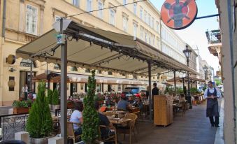 Siamo stati in questo albergo per una sola notte avendo avuto problemi con l'appoggio prenotato. Siamo arrivati martedì alle 18 e abbiamo effettuato la prenotazione al momento. La signora alla reception è stata gentilissima e velocissima. Ci hanno dato la camera numero 1, una tripla ma eravamo in due. La camera disponeva di una fantastica vetrata che dava su erzsebet ter. Camera pulita, dotata di qualsiasi comfort. La colazione, inclusa nel prezzo della camera, una vera goduria. Troverete di tutto dal dolce al salato. Reception 24/24h. Di solito alloggio in appartamenti perché non amo gli alberghi ma questo è stato una vera scoperta! Lo consiglio!