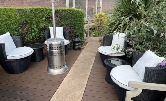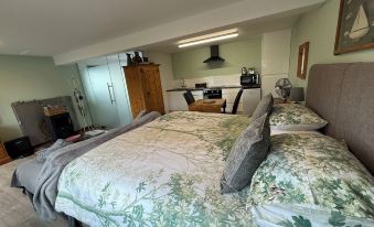 The Studio has its own entrance and courtyard garden with sun loungers & table & chairs for outside dining and inside is open plan apart from the bathroom. It is private and not overlooked. The views around the countryside are lovely,