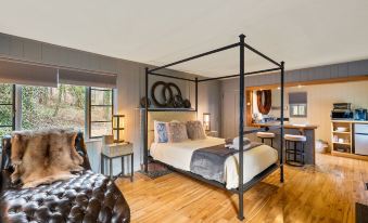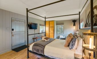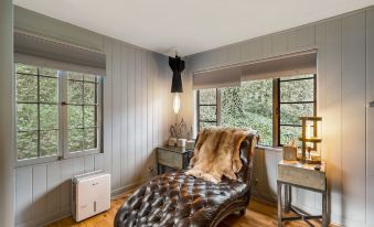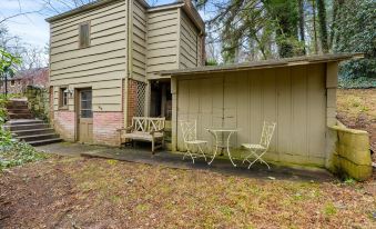 Come relax in this cozy cottage in the historic Chunns Cove community, conveniently located only 3 miles from downtown Asheville. The perfect size for an individual or couple, this retreat offers a uniquely decorated and well appointed interior, with the feel of an English country cottage on the exterior. Queen size bed with plush bedding, comfy chaise lounge in the sunny reading nook, and kitchenette that doubles as flex work space with bar stools.
