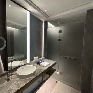 Das Badezimmer roch die ganze Zeit muffig. Als ich es dem Personal beim Auschecken sagte, fragten sie, ob es schon seit meinem Einchecken so gewesen sei. Dachte ich also, ich wäre der Übeltäter? Jedenfalls fühlte ich mich schlecht, aber ich habe es ertragen. Als ich ihnen beim Einchecken sagte, dass es roch, fragten sie, warum ich es ihnen nicht gleich gesagt hätte. Wenn ich es getan hätte, hätten sie mein Zimmer gewechselt. Ich finde, ihr Umgang mit den Kunden war wirklich falsch. Das Personal sagte, sie würden an die Kunden denken, aber als Kunde fühle ich mich wirklich schlecht, deshalb schreibe ich eine Bewertung. Ansonsten war ich mit der Lage und der Inneneinrichtung des Hotels zufrieden, die wunderschön waren. Allerdings finde ich, dass der Informationsservice verbesserungswürdig ist.