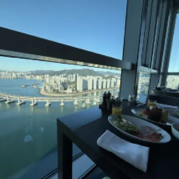 Fabulous hotel with amazing location and views. The lounge and restaurants are on 30/31st floors with plently comfortable seats placed to make the most of it. The gym and pool were of high quality with same views. Food (Italian restaurant) and drinks ( wines and cocktails) were fabulous. Location is great for Haeundae beach with many restaurants and cafes around. Pricy but worth it. Breakfast was too expensive ( S$ 55/ £35 pppn) but lots of cafe options around