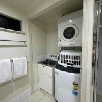 Die Waschmaschine und der Trockner im Zimmer waren ein willkommener Bonus. Sauberkeit und Hygiene waren ausgezeichnet, und das Hotel liegt direkt neben Cairns' größtem Einkaufszentrum und Bahnhof. Das Stadtzentrum ist allerdings immer noch 15 Gehminuten entfernt. Meine einzige Beschwerde war das Internet, das praktisch nicht nutzbar war. Sogar mein Handyempfang war im Zimmer lückenhaft.
