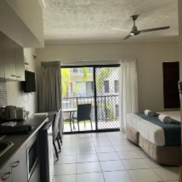 Wir blieben zwei Nächte, hauptsächlich um in der Nähe des Bahnhofs von Cairns zu sein, der uns von der malerischen Kuranda-Zugfahrt aus zu unserem Ziel führte, und um in unserer eigenen Küche kochen zu können. Ein großes Einkaufszentrum ist nur einen kurzen Spaziergang entfernt. Das Apartment war sauber und geräumig, aber nichts Besonderes. Alles funktionierte einwandfrei. Das Personal war sehr nett und hilfsbereit. Unser Zimmer zur Straße hin war etwas laut, insbesondere wegen der Müllabfuhr. Insgesamt kann ich mich nicht beschweren, aber es ist auch nichts Besonderes.