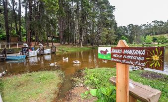 O hotel é bem agradável mais tivemos uma experiência trágica no passeio de trenzinho, o mesmo estava em péssimas condições, super lotado e o passeio era só para crianças pequenas. Porém alguns pais ficaram inseguro e foram juntos. Foi difícil conseguir chegar até o mirante, um lugar longe e muito perigoso por conta das subidas íngremes. Na volta choveu muito forte, deslizamos na ladeira e pra nós acontecer uma tragédia maior o motorista jogou o veículo na encosta. Foi a nossa sorte. O hotel não disponibiliza rádio, não há comunicação, tbm não tem veículo com tração para nós buscar naquele lugar. As crianças sem os pais gritando foi terrível. Os recreadores foram incríveis, tentaram manter a calma. Tivemos que descer ladeira a baixo ou ficaríamos lá pq o trem terminou de quebrar. O tio Pato cuidou de várias crianças, carregou outras, o tio Mostarda deu a blusa de frio pro meu filho, a tia estelar tbm foi com uma criança nas costas, tia bambo ajudando como podia, enfim. Foi uma caminhada longa e muito difícil, especialmente pra mim com dois filhos autistas. Um pai me ajudou porque fiquei por último no grupo. Uma família ficou pra trás pq a filhinha entrou em pânico e foram socorrida por moradores locais. O hotel não se pronunciou. Alguns pais procuraram pra fazer reclamação e a gerente apenas nos ouviu. Não sei que providencias foram tomadas ou se serão tomadas Deixo aqui registrado a minha indignação por expor a vida de tantas crianças em um lugar remoto, sem comunicação, sem condições de resgate por parte do hotel, e em um veículo com o motor fraco, ruim que mal conseguia subir a ladeira... Enfim Se vc for pra lá por favor não faça esse passeio, aliás espero que o hotel pare com esse percurso antes que aconteça uma tragédia maior. Gratidão a cada um dos monitores que se esforçaram pra que parecesse uma grande aventura e não deixaram que não visão dos pequenos, o trauma fosse ainda maior
