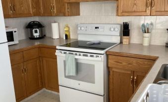 Enjoy a fully stocked kitchen, and unwind with Disney+ and board games for entertainment.