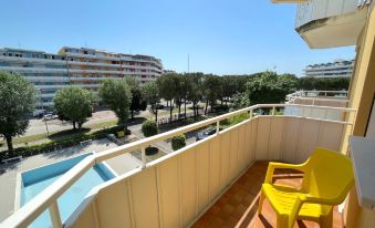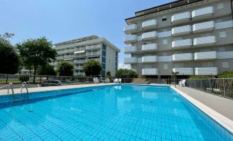 Komfortable Zwei-Zimmer-Wohnung im 3. Stock mit Aufzug in einer Residenz mit Gemeinschaftspool, nur 340 m vom Meer entfernt. Die Wohnung verfügt über ein Wohnzimmer mit Einzelschlafcouch, eine voll ausgestattete separate Küche, ein Schlafzimmer mit Doppelbett (zwei zusammengeschobene Einzelbetten) und Einzelschlafcouch, ein zweites Schlafzimmer mit zwei Einzelbetten, einen Balkon und ein komplettes Badezimmer mit Duschkabine und Waschmaschine. Die Unterkunft bietet Platz für bis zu sechs Gäste. Ein überdachter Parkplatz ist im Preis inbegriffen. Klimaanlage ist gegen Aufpreis verfügbar (siehe unten). Die Pools sind saisonal geöffnet (Mitte Juni/Anfang September); die genauen Daten können je nach Wetterlage oder Wartungsarbeiten variieren.