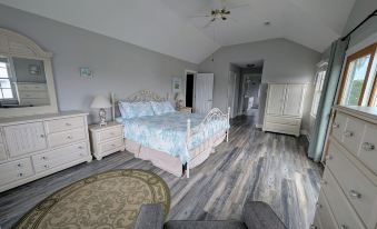 With 5 inviting bedrooms—including a king bed, three queen beds, and a cozy bunkbed room—there’s space for everyone to unwind. The home features 3.5 bathrooms, including one with a jacuzzi tub, perfect for relaxing after a day exploring the beach or town. Each master bedroom has its own private balcony for your enjoyment.