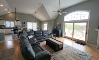 The bright, open third-floor living space is ideal for gathering with family and friends. Whether you're preparing meals in the kitchen or relaxing in the spacious living area, the layout makes it easy to connect and create lasting memories. Step out onto the third-floor deck to catch stunning sunsets or enjoy stargazing under the clear night sky—it's a favorite spot for many guests.