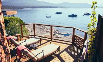 Jewel of Lake Tahoe- Great location. This home does not have a lake view. The house is located 150 yards from the Lake and has 20ft wide shared pbeach. We have a lake view deck in front of the beach, with 4 lounge chairs for sunbathing and extra regular chairs.