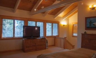 Each bedroom has its own tv plus one in the family room where fireplace is.About pets:No pets allowed.About checkOut:Check out before 11:00 AM.About children:Children allowed: ages 0-17.About checkIn:Check in after 4:00 PM.About smoking:Smoking is not permitted.About minBookingAge:Minimum age to rent: 21.About events:No events allowed.