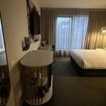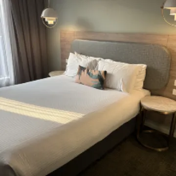 Booked a last minute 3 nights at this hotel during our recent holiday in Australia. We chose this hotel out of 3 others in the area based on price. Check in was smooth & easy & the receptionist was very helpful with the information she provided about the hotel & its facilities. The room itself was a real surprise, very modern, clean & comfortable. Fridge, TV, coffee & tea making facilities, complimentary water in the fridge, great toiletries provided in the bathroom too. Nice big walk in shower with a big shower head. There is also a bar/restaurant attached & we did eat there but the food is average although large portions, we did not try the breakfast buffet so cannot comment although it is an extra cost & not included. Overall very pleasantly surprised & it exceeded our expectations. Can highly recommend @ around 140 AUD per night, great value.