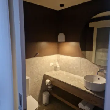 Als ich mich für ein Hotel entschieden habe, war ich darauf bedacht, dass die Zimmer frisch renoviert waren und daher sehr neu und sehr gut waren. Als ich dort ankam, traf ich die richtige Wahl. Von der Lage her gibt es einen großen Supermarkt gegenüber und es ist sehr praktisch, Lebensmittel zu kaufen. An der Rezeption gibt es Schokoladenkaffee und andere Selbstbedienungsgetränke. Das Einzige ist, dass die Kaution 100 beträgt, die direkt abgezogen und nicht vorautorisiert wird. Es dauert eine gewisse Zeit, bis Ihnen die Kaution nach der Überprüfung des Zimmers zurückerstattet wird.