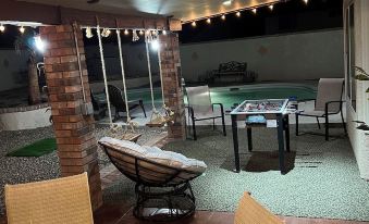 Stay comfortably in Tucson at this 4-bedroom house. The bedrooms feature 1 king bed, 1 queen bed, 1 twin bed, and 1 full bed, ensuring an excellent night's sleep for all guests. The property offers AC, heating, a washing machine, WiFi, an iron, and a hair dryer, providing enjoyable and convenient amenities. With 2 bathrooms equipped with hair dryer and showers, getting ready in the morning is a breeze. Enjoy outdoor TV’s and entertainment while swimming and relaxing by the pool! We look forward to hosting you at our place.About pets:No pets allowed.About checkOut:Check out before 11:00 AM.About children:Children allowed: ages 0-17.About checkIn:Check in after 4:00 PM.About smoking:Smoking is not permitted.About minBookingAge:Minimum age to rent: 18.About events:No events allowed.