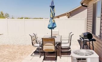 We stayed 1 night during a road trip. Backyard was great for the dogs. Bed was comfortable. Quite neighborhood.