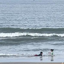 - Die Schule hat einen Privatstrand, aber der Strand ist sehr kurz, die Wellen sind stark, es gibt nur Felsen, es ist schwierig, im Wasser zu spielen, es gibt keinen Sand, auf dem die Kinder spielen können.