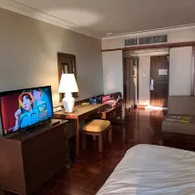 Das Gebäude und die Zimmer sind mit der Zeit in die Jahre gekommen (Bad/Kühlschrank/Garderobe), da das Hotel schon lange geöffnet ist (mehr als 40 Jahre), aber der Service ist immer noch gut. Darüber hinaus ist der Standort geeignet, in der Nähe von Geschäften. Der Pool sieht optisch sauber aus. Schöner Ort zum Schwimmen (schade, dass ich keine Zeit hatte) Frühstück im Sakun Na-Raum, viele Tische, sauber, komplettes Essen im ABF-Stil, zusätzlich gebratene Sojasauce, gebratener Zugreis, Schweinebrei, Schweinenudeln, als ok angesehen. Zum Frühstück geöffnet, es ist gut, rechtzeitig zu essen, bevor man Geschäfte macht. Der Preis ist im Vergleich zum Essen, Service, der Aussicht und der Lage akzeptabel.