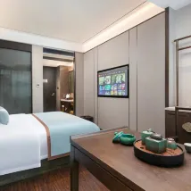 Graceful Joy Double Bed Room with Telescreen Hd Tv & Traditional Chinese Tea Table