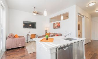 Welcome to our BoHo Flat with King Bed in the luxurious Southpark area of Charlotte! This property comes fully equipped with all you’d need for a comfortable long term stay if you choose! The kitchen comes fully stocked with cookware, stainless steel appliances and Keurig for fresh coffee. Our High speed WiFi can be used with the Smart Roku TV including apps like Hulu, Prime, and Netflix to name a few! Enjoy the freedom of signing in using your login credentials to watch all your favorite shows! Take pleasure in stepping out on the private balcony to relax or work on your laptop while taking in the fresh outdoor air. FREE covered parking is included with your stay. Never worry yourself about trips to the laundromat with a Full Sized Washer/Dryer located conveniently inside of the unit. This location couldn’t get any better being within walking distance to local hospitals, library, coffee shops, restaurants, shopping centers and not to mention only 5 Miles from Uptown and the CLT City Center. We look forward to your stay!