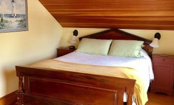 The Lena Coleman apartment is the least-changed of the four apartments at Ship's Light. The layout remains the same, with a fully-equipped open kitchen/dining/living room area, cozy bedroom with comfortable queen-sized bed and a beautifully-tiled bathroom with new fixtures. It boasts a lovely porch deck, from which you can enjoy your morning coffee or a glass of wine while watching the sunset. It also has newly-installed, solar-powered air conditioning and heating throughout the apartment. The house has two Level 2 EV chargers for use by renters.