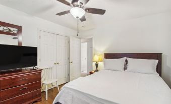 Make yourself comfortable in this air-conditioned cottage, which features a fireplace. A kitchen is outfitted with an oven, a stovetop, and a microwave. Conveniences include a washing machine and a ceiling fan.