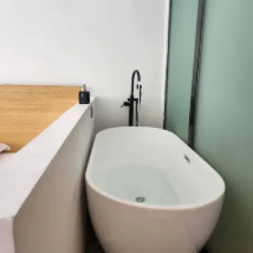 Zum Hotel muss man eine Treppe hinaufsteigen, was bei großem Gepäck unpraktisch ist. In der Halle herrscht viel Unordnung. Als ich eincheckte, roch die Bettwäsche, als ob dort schon einmal jemand geschlafen hätte und die Bettwäsche nicht gewechselt worden wäre. Ich habe den Laden gebeten, die Bettwäsche zu wechseln, aber zum Glück war der Laden bereit, sie zu wechseln. Die Schalldämmung ist schlecht und man hört das Geräusch sogar beim Duschen. Es ist unbequem, nach oben zu gehen, um die Waschmaschine und den Trockner zu benutzen.
