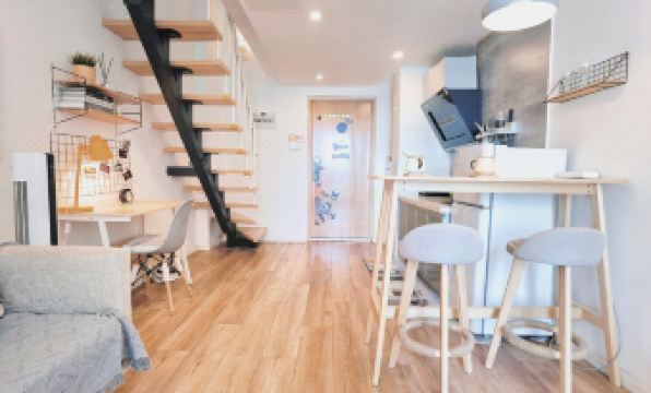 很喜歡複式的結構,有了更大的空間。這次一樓房間裝修有氛圍,空間大,而且地理位置也好,離地鐵一號線衹有幾分鐘的路程(騎行)