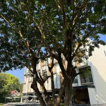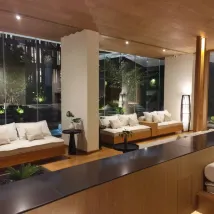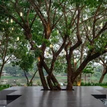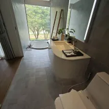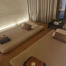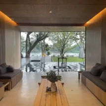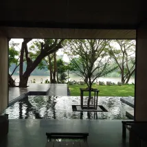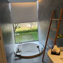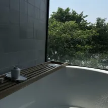 Das Hotel ist im japanischen Stil eingerichtet, die Betten sind sehr bequem, es gibt eine große Badewanne und es gibt einen schönen großen Baum. Es ist sehr bequem und bequem, auf der Terrasse am Fluss zu sitzen