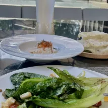 Gehobene Küche. Fantastische Aussicht und Atmosphäre insgesamt. Gute Lage, das Hotel grenzt an den Blauen Tempel, den man unbedingt sehen muss.